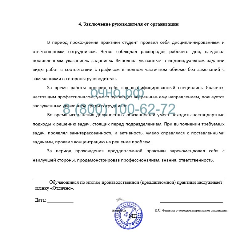 - Пример заключения руководителя организации по учебной практике МТИ